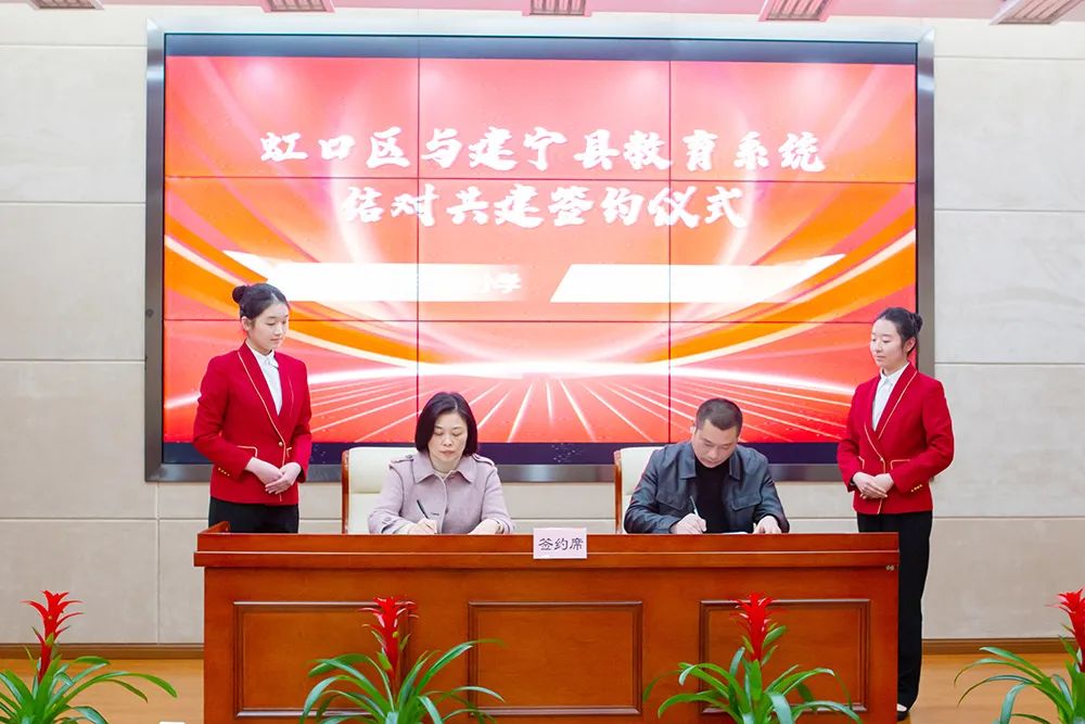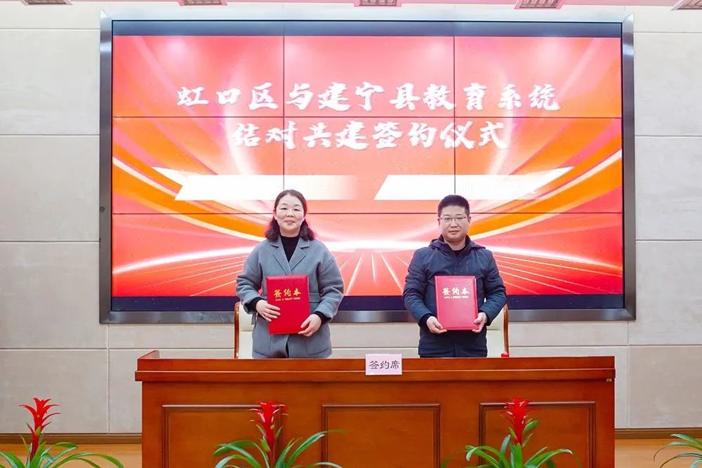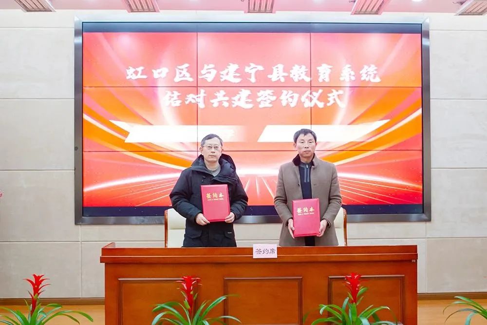 2月24日,虹口区与建宁县教育系统结对共建签约仪式在上海南湖职业技术学院文化中心举行,建宁县委常委、统战部部长柯良发,虹口区教育工作党委副书记、局长孙磊,建宁县教育局党组书记、局长徐铨等出席本次签约。