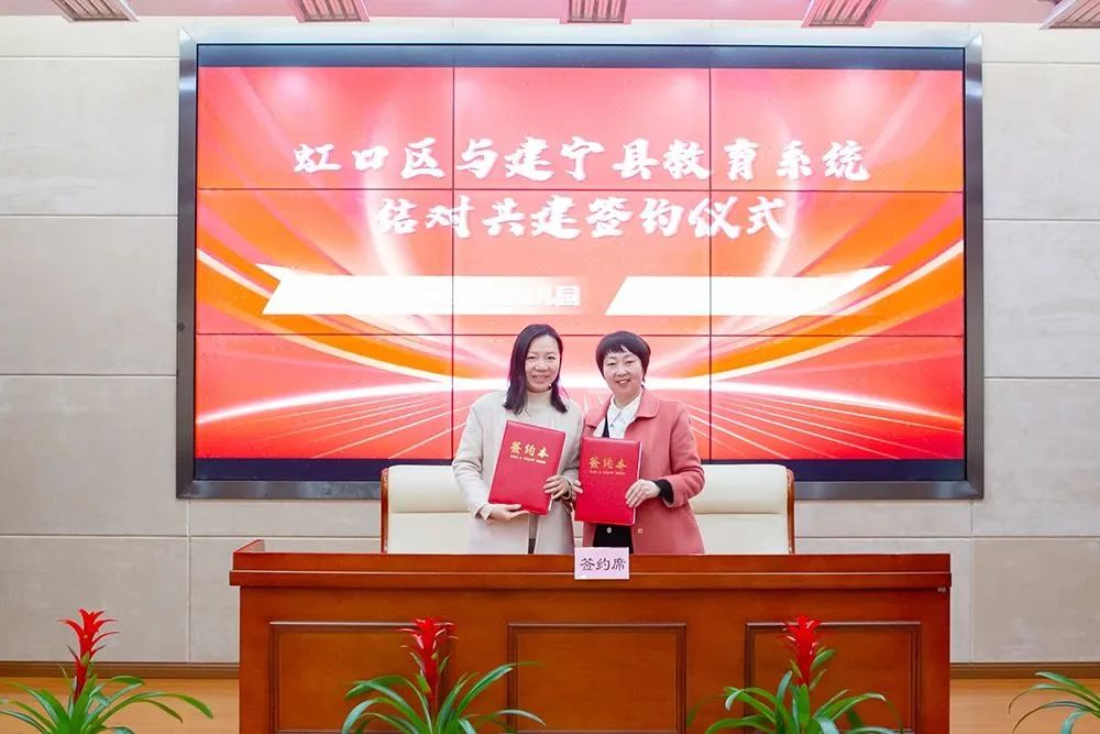 签约仪式上,虹口区教育局副局长邬文敏和建宁县教育局副局长邱镛勋分别介绍了两地教育基本情况。