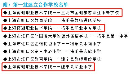 南湖职院作为第一批建立合作学校,将与三明市金湖旅游职业中专学校、将乐县职业中专学校及建宁县职业中学三所院校建立合作关系,积极推动教育教学和人才培养各项工作对口交流合作,促进两地教育共同进步。
