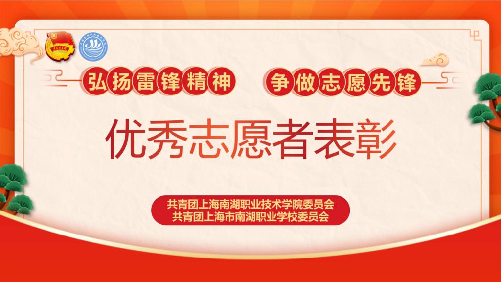 3月是上海南湖职业技术学院的“学雷锋志愿服务活动月”,为弘扬雷锋精神和志愿精神,树立优秀典型、凝聚榜样力量,3月17日上海南湖职业技术学院举行“弘扬雷锋精神 争做志愿先锋”优秀志愿者表彰大会,34名在各类志愿服务工作中表现突出的优秀志愿者接受表彰。其中,经本人申报、班级推荐、演讲答辩、学院评选的2021年度优秀志愿者8名,在学院疫情防控工作中表现突出的优秀志愿者26名。