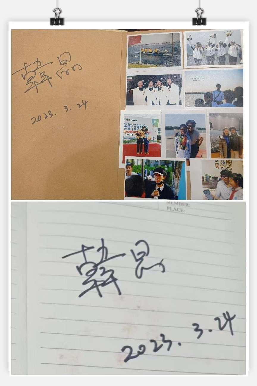 说到赛艇运动能给大家带来什么时,韩教练深情地讲到,哪有什么一夜成名,其实都是百炼成钢,那些看似不起波澜的日复一日,会在某天让你看到坚持的意义。不是有了希望才去坚持,而是坚持了才有希望。金牌的背后,离不开汗水的积淀,是十年如一日的坚守,更是赛艇人的涅槃重生。当有台下聆听的学生问到在平时的训练中需要做什么时,韩教练说,坚持和自律是每个运动员都需具备的基本属性,并时刻体现在训练、休息、饮食中的每一个细节。无论是日常重复性的技巧练习,还是临赛前的艰辛训练,全靠坚持和自律。讲座结束后,韩晶教练和校赛艇队的成员们合影留念。