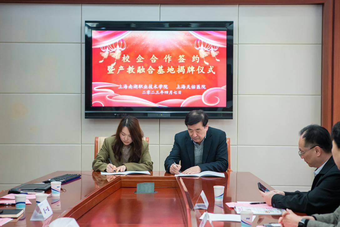 为进一步加强院校与医院间的校企合作,探讨护理人才培养新方向、新模式,4月7日下午,上海南湖职业技术学院与新希望集团旗下同济大学附属上海天佑医院举行校企合作签约和揭牌仪式。南湖职院党委副书记、院长朱建柳,副院长周一峰,健康护理系副主任袁媛,上海蓝生脑科医院投资股份有限公司副总裁叶文琴,医疗管理部总监张晓斌和唐秀花,上海天佑医院执行院长王强参加签约仪式。