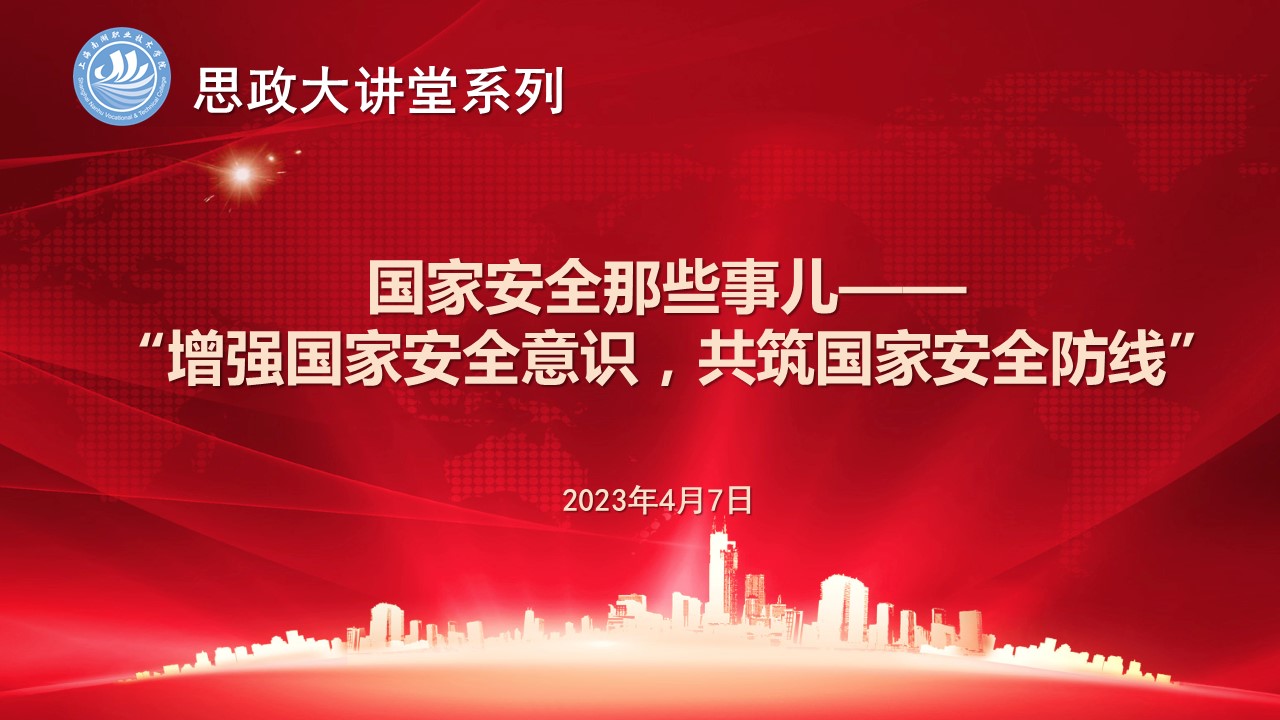 在全国第八个国家安全教育日来临之际,上海南湖职业技术学院思政大讲堂系列特邀施老师为同学们开展“国家安全那些事儿——增强国家安全意识,共筑国家安全防线”专题讲座。学院青年教师、思政教师、专兼职辅导员和学生代表共计200余人参加了本次活动。