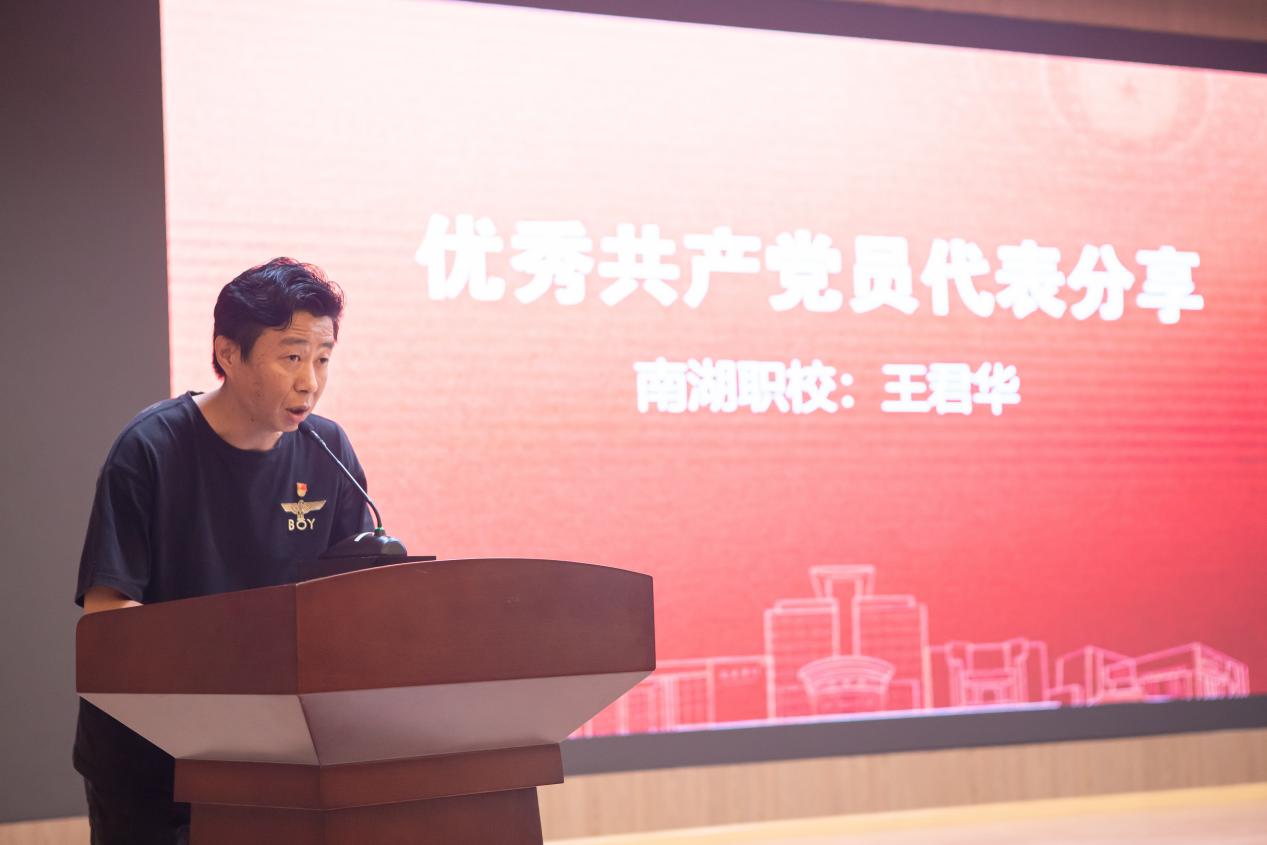 南湖职院党委书记芦秀兰,党委副书记、院长朱建柳为优秀党员颁奖