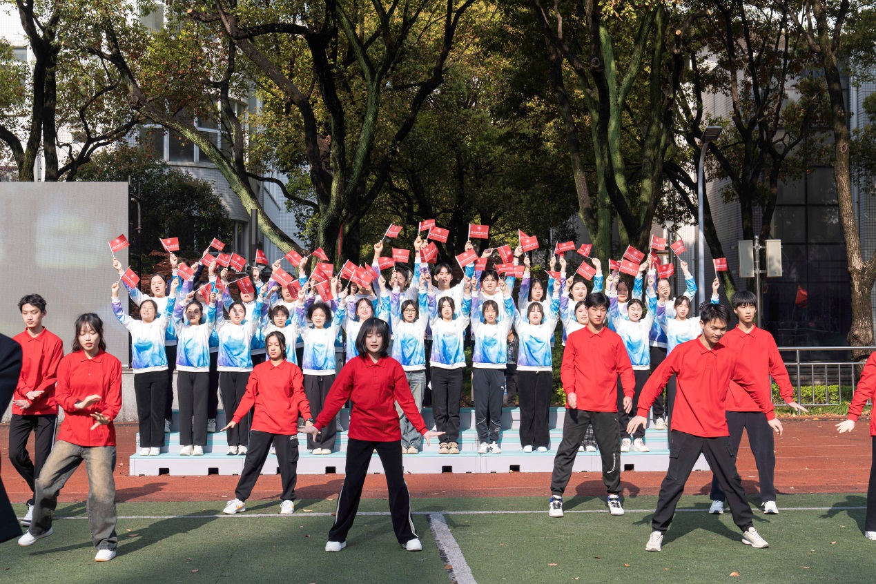 《筑梦南湖》定稿后,MV的脚本创作、选景取景、拍摄剪辑随之紧锣密鼓地进行。在全校师生的大力配合下,仅用一个星期就完成了制作,在校庆当日精彩呈现。秋实林里谈理想、成才路上结伴行,实训室里苦操练,运动场上勇拼搏……伴着悠扬的旋律,大屏幕上一帧帧精美的画面缓缓展现;与此同时,操场上合唱团的同学们放声高歌,舞蹈社团的成员踏着节拍舞动,一时之间,南湖的校园彩旗迎风招展,歌声激越嘹亮,而随之到来的一面巨大校旗,则将现场气氛推向了高潮,此刻,歌精彩,梦成真,南湖是欢乐的海洋。