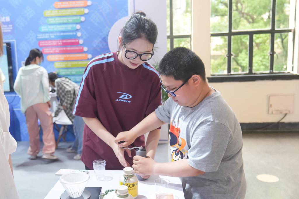上海“星光之约”记者团学记单思远同学到教博会参加采访实践活动后,第二天又带了奶奶和爸爸来参展,奶奶饶有兴趣地询问眼前的几个精美罐子装的咖啡豆各自有什么样的特色风味,并亲自动手,尝试了不同咖啡的冲泡方法,对于咖啡的味道,她的评价是“还不错哦,我自己也回去试试”。