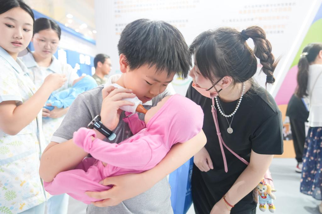 “照顾小宝宝可真是不容易呢,刚换好尿布又要喂奶,接着又是拍嗝,才抱几分钟我手臂累得都快抬不起来了,妈妈太辛苦了!”在“哭声中的秘密”体验现场,一位怀抱“小奶娃”的同学有感而发。高仿真的“小奶娃”和人类婴儿的体重身量相当。“一个‘小奶娃’代表着一个新生儿的需求,从饥饿到安抚,从排泄到舒适,每一个哭声都是对这个世界的一种回应。而体验者,需要通过正确的操作,去解读这些哭声背后的秘密,让‘小奶娃’做出相应的反馈。”健康护理系部的沈玲老师向参观者解释到。