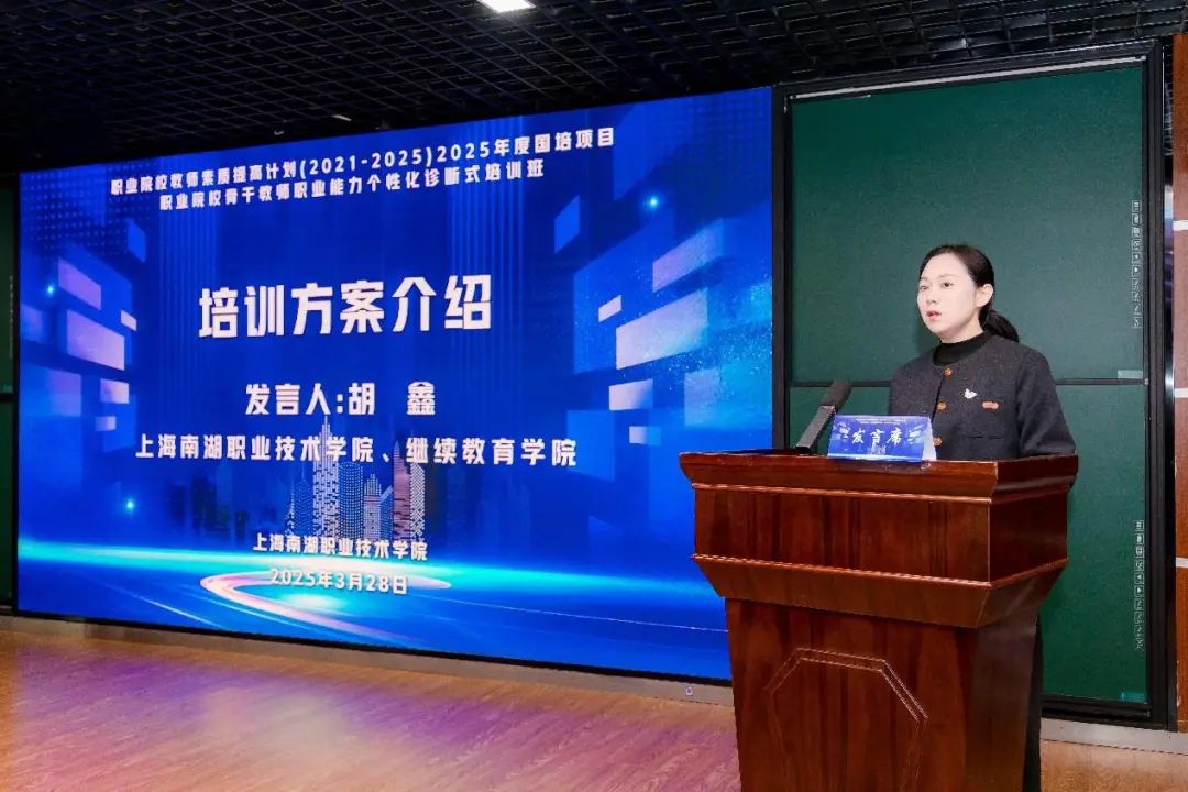 南湖职院继续教育学院,本次培训负责人胡鑫老师对培训方案进行了详细解读。今年的培训项目以“个性化诊断”为核心,在继承以往经验的基础上大胆创新,新增“三阶诊断法”,精心设置“三段式教学视频录制”“教案三轮优化”等极具针对性的实践任务,成功构建起“诊断-改进-提升”的闭环机制。与此同时,为满足教师多元化的学习需求,本次培训还特别开放了数字化选修资源包,内容涵盖“人工智能课堂设计”“行动导向教学法” 等前沿教学领域,助力教师精准补齐自身短板。参训教师在培训过程中,需完成教案、说课稿及课堂实录的创作,并在专家的悉心指导下,实现培训成果的有效转化。