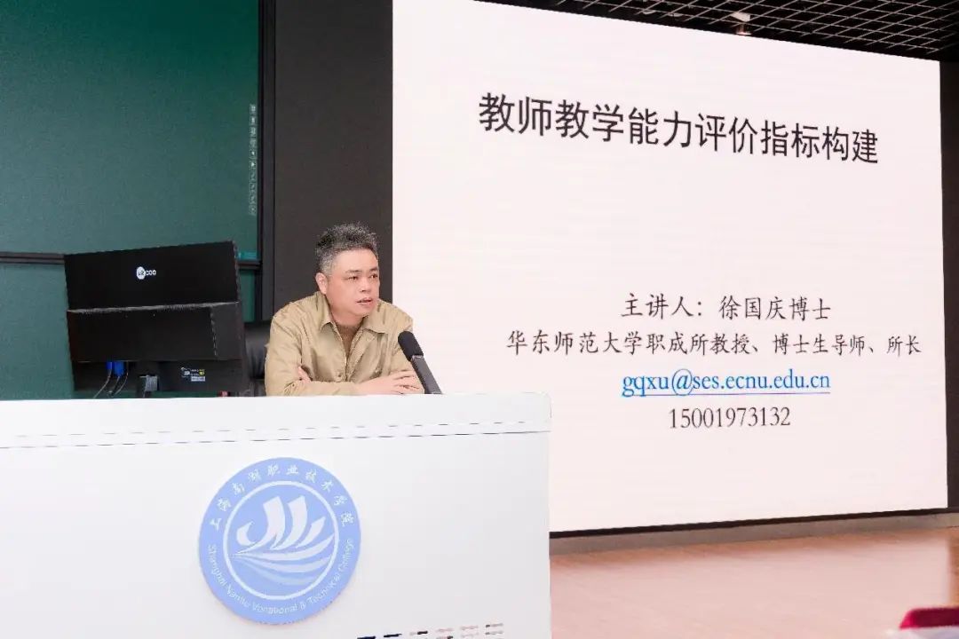 开班仪式后,徐国庆教授以“教师教学能力评价”为题开启首场讲座,徐教授通过生动的教学故事启示我们,教育的温度在于细节——无论是手把手的指导还是师生平等的互动,都彰显了教学品质的核心。同时,徐教授剖析了教学能力的专业化路径,强调好课应以目标为导向,将知识转化为学生能力,并提出了涵盖教师授课能力、师生互动、时间管理及学习评价的四大评价维度,为教师成长提供了务实的方向。