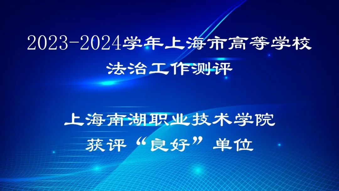 为深入贯彻落实习近平法治思想、习近平总书记关于教育的重要论述,全面推进依法治教、依法办学、依法治校,加强高校法治工作,推进高校治理体系和治理能力现代化,推动学院以良好法治成效服务高质量发展,善用法治方式和法治思维破解学校内部治理难题,进一步提升高校依法治理水平,根据教育部《高等学校法治工作测评指标》、《2024年上海市高校法治工作测评实施方案》和《上海市教育委员会关于开展2023-2024学年高等学校法治工作测评的通知》(沪教委法〔2024〕9号)要求,上海市教育评估院于2024年下半年对上海南湖职业技术学院开展法治工作测评。学院于2021年成立后首次参评,并获评2023-2024学年上海市高等学校法治工作测评“良好”单位。