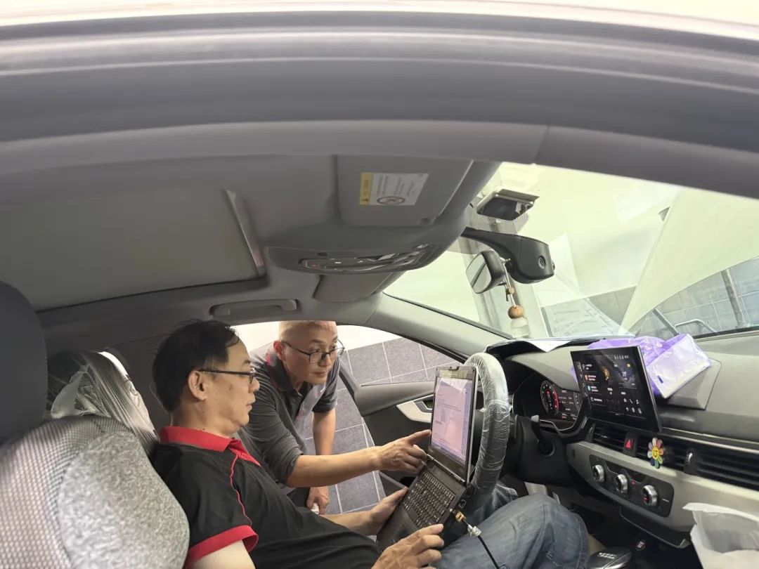 上海永达汽车集团围绕智能网联新能源汽车维修为朱列、李颖、蒋勇、沈红雷、郝磊恒、谭晓兵6位参训教师提供了关键领域的实践岗位,并定制了涵盖技术实操、流程规范、客户服务的实践方案,助力教师掌握最新车型技术与服务标准。在充满机油气味与电子设备嗡鸣的维修车间里,教师们带着油污的工装上写满了实践的热忱。