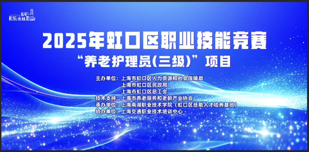 2025年8月25日,2025年虹口区“养老护理员(三级)”职业技能竞赛在上海南湖职业技术学院密云路校区圆满收官。此次竞赛吸引了众多养老服务机构、相关院校的积极参与,充分展示了扎实的专业知识和精湛的操作技能,共同展现专业风采,交流先进经验,为推动养老护理行业高质量发展注入新动力。本次竞赛由上海市虹口区人力资源和社会保障局、上海市虹口区民政局、上海市虹口区总工会主办,上海南湖职业技术学院承办,上海交通职业技术培训中心协办,上海市养老服务和老龄产业协会提供技术支持,旨在推动养老护理行业技能人才队伍建设,提升区域养老服务水平。