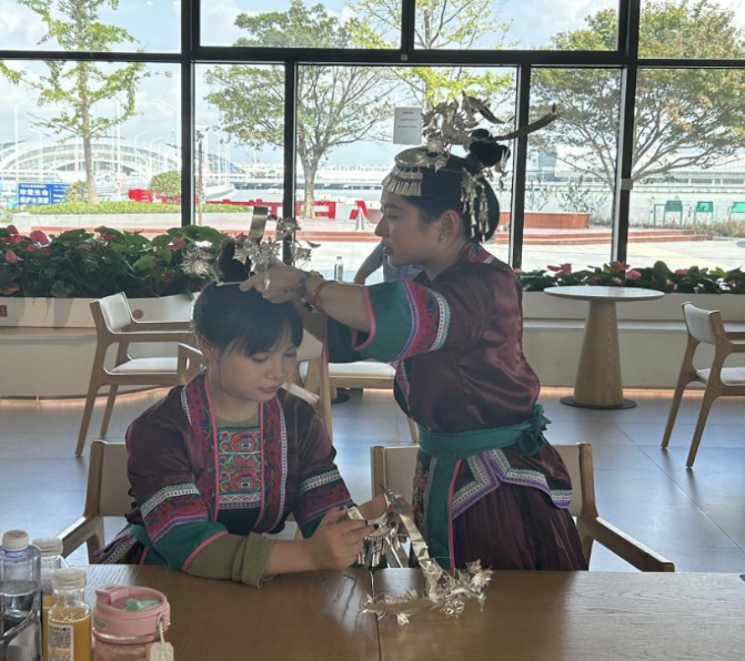 2025年9月26日下午,智慧商旅系网络营销与直播电商专业的2023级与2025级学生,在系部教师与企业导师的共同带领下,前往浦江出入境边防检查站,与校企合作企业邦富达共同开展了一场别开生面的“桂品出乡,侗寨风情”助农直播带货活动。