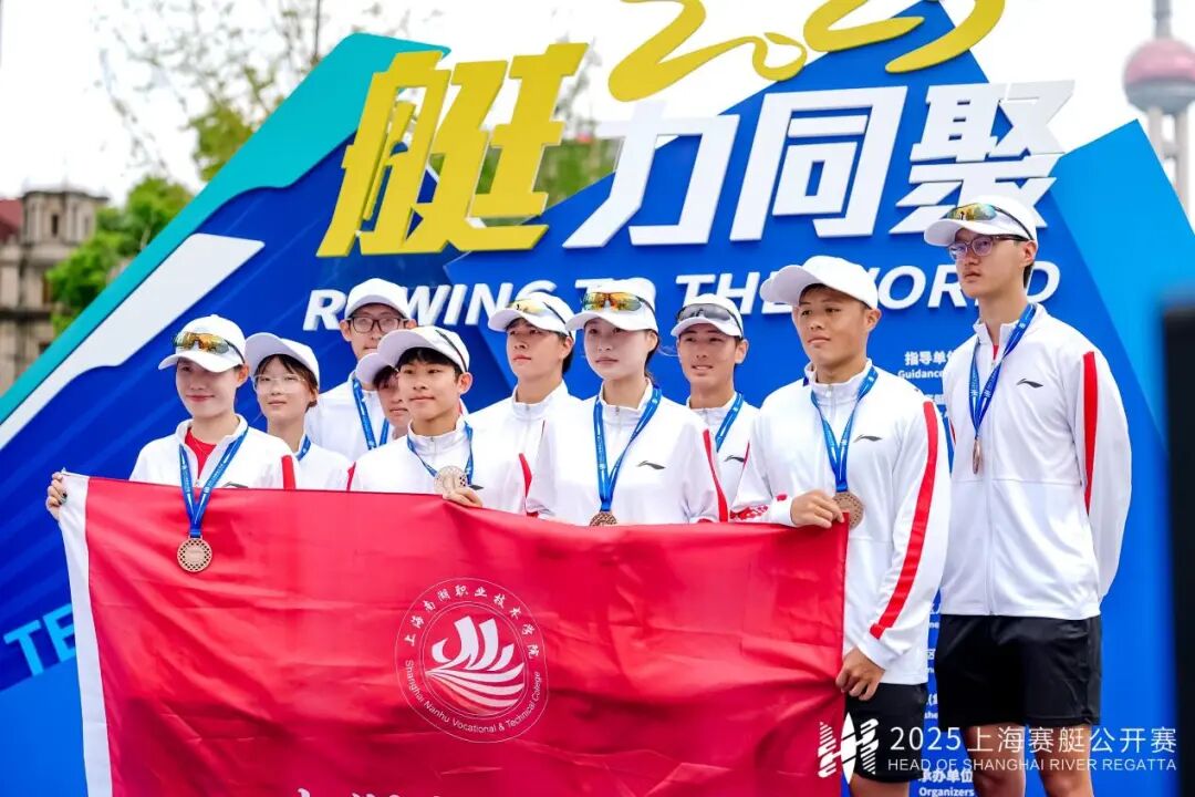 赛艇队张庆教练表示“这个奖项,既是对我们竞技水平的认可,更是对团队服务赛事、践行体育精神的肯定。从嘉兴赛事的第九名到如今站上上海公开赛领奖台,队员们用进步证明了‘不放弃、敢拼搏’的体育精神。”上海南湖职业技术学院始终践行“体教融合”育人理念,将赛艇运动作为培养学生团队协作与抗压能力的重要载体,此次获奖既是学院体育教育成果的生动体现,更为校园体育文化注入了新活力。