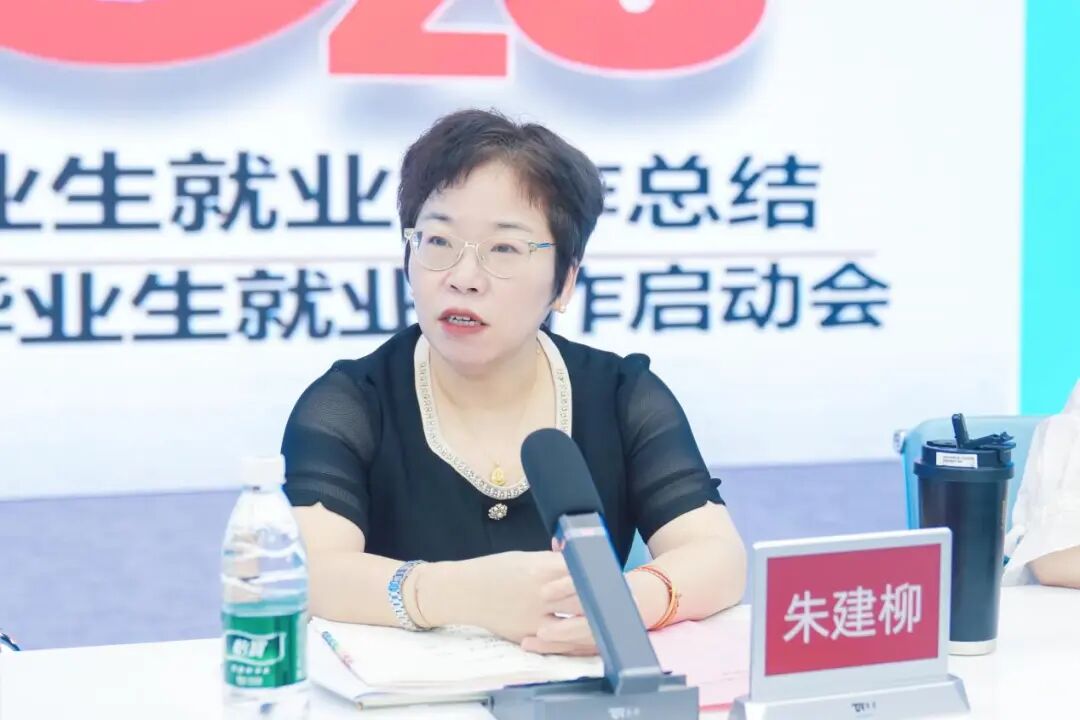 会议最后,学院党委副书记、院长朱建柳作总结讲话。她指出,就业是民生之本,也是学院人才培养质量的重要体现。学院始终将毕业生就业工作摆在突出位置,2025届就业工作取得的成绩,是全院上下齐心协力、共同奋斗的结果。面对2026届毕业生就业工作,学院要继续凝聚共识,形成更大的工作合力。一方面,要进一步强化“全员参与、全程指导、全方位服务”的就业工作理念,每一位教职员工都要成为学生就业的引路人,从入学教育到毕业指导,将就业意识贯穿人才培养全过程;另一方面,要主动适应经济发展新常态和产业转型升级需求,优化专业设置和人才培养方案,使我们的毕业生更能适应市场变化。同时,学院要以更开放的姿态拓展就业市场,深化校企合作,建立更多稳定的就业基地,为学生创造更多高质量的就业机会。朱建柳提出三点要求:一是要强化责任担当,建立 “学校统筹、系部主责、辅导员落实” 的三级就业工作机制,确保各项任务落地见效;二是要创新工作方法,充分利用AI技术、校企合作等资源,提升就业服务的精准度与实效性;三是要关注学生成长,既要帮助学生找到合适的工作,更要引导学生树立正确的就业观、价值观,实现 “就业有质量、发展有空间” 的目标。