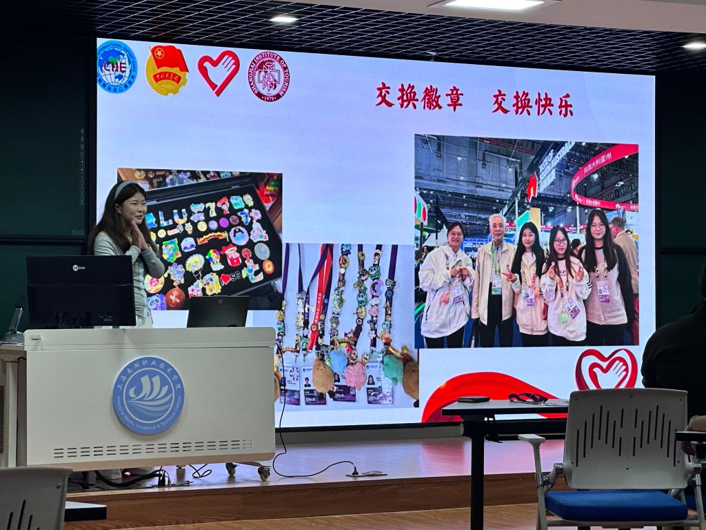 10月14日,首场培训特邀上海旅游高等专科学校连续两届进博会志愿者许泽平与第七届进博会优秀志愿者张珍露担任主讲。两位“前辈”围绕实战经验展开分享,将服务经历转化为生动案例,详细讲解了岗位技能细节、跨文化沟通技巧、突发事件应对策略及长时间服务的心态调节方法。现场,他们还展示了志愿服务期间收集的纪念徽章,以“交换徽章、传递快乐”的互动故事,让志愿者们深刻感受到,进博服务不仅是职责,更是向世界展示中国青年开放、友善、专业形象的重要窗口。