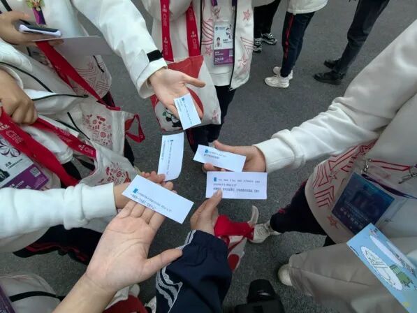 志愿者们在笔记本上标注动线及场馆内的注意事项:“此处通道较窄,需引导客流有序通行”。通过实地走访,志愿者们对展区布局形成了直观认识,为服务工作奠定了坚实基础。他们认真记录了其功能定位,并反复演练引导路线,确保能够熟练指引来宾。