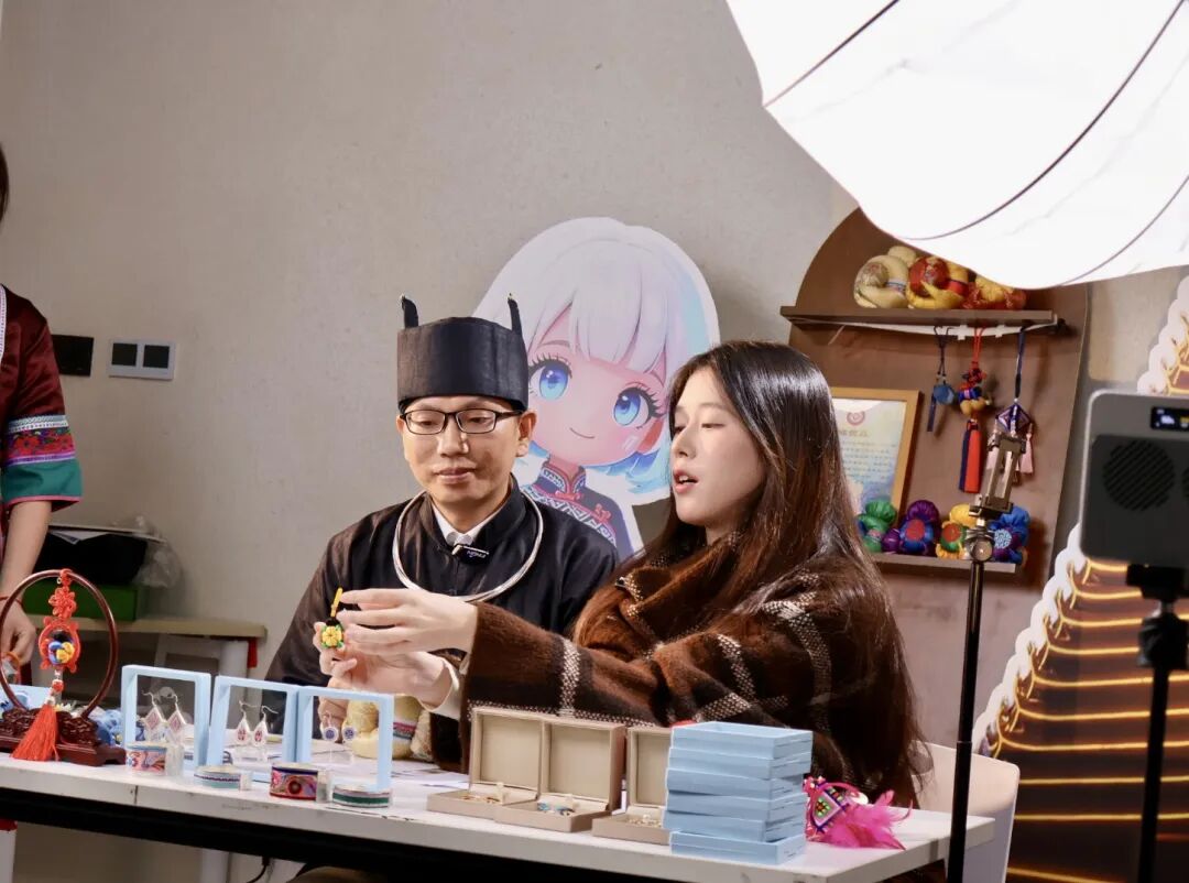 当传统非遗遇上直播电商,会碰撞出怎样双向奔赴的火花?11月5日下午,上海南湖职业技术学院智慧商旅系网络营销与直播电商专业的师生们,携手广西“三江侗族服饰制作技艺”市级非遗代表性传承人吴双林,开展了一场“侗族非遗饰品直播专场”活动,让侗绣文化在“云端”绽放别样光彩。