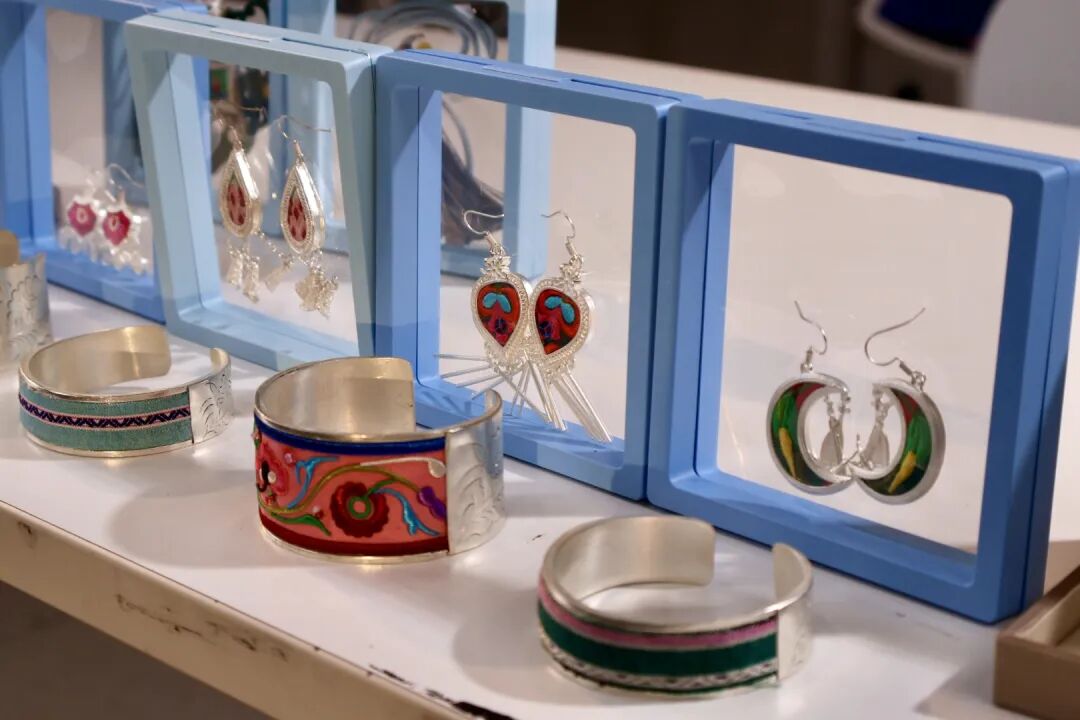 师生们参考直播实战经验,与传承人吴双林一起,共同悉心分析产品特点与内涵,从百余件侗绣作品中精心筛选出侗绣香囊、吉祥花挂件、刺绣饰品等十余款兼具文化内涵与实用价值的饰品,确定既体现非遗价值,又符合大众消费预期的亲民价格。