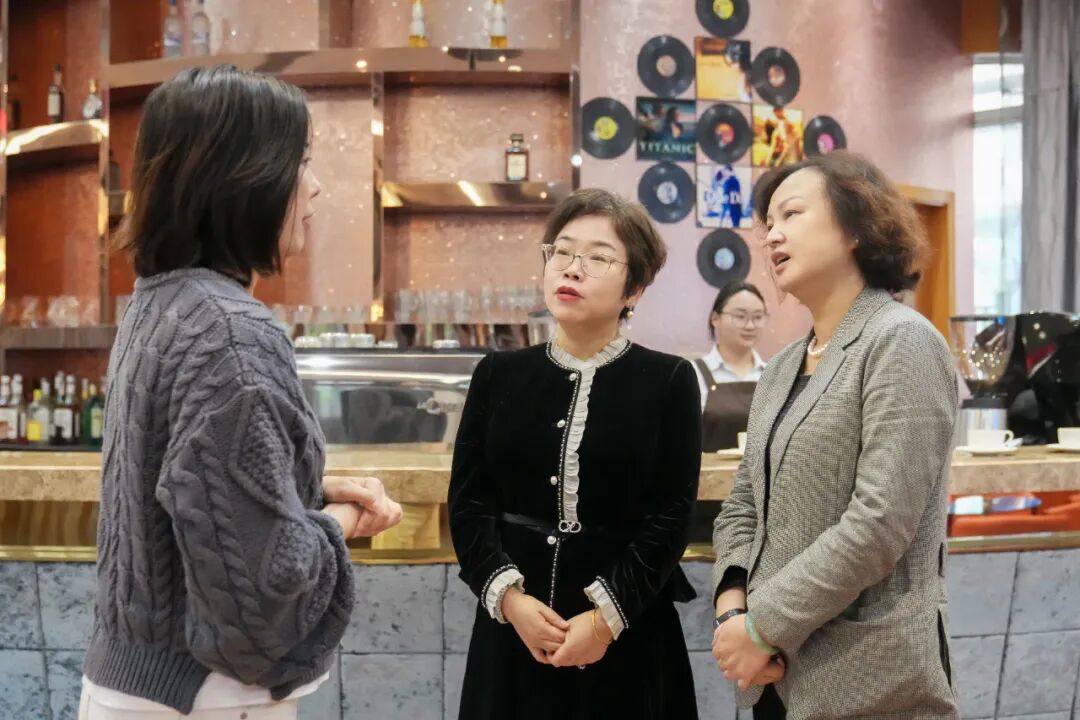 座谈会前,谢榕榕一行在朱建柳,南湖职院党委副书记、纪委书记赵锋,副院长朱清清,胡跃忠,工会主席、组织人事处主任杨柳,院长办公室主任陈莉莉和各系部主任的陪同下参观了5G数字创意实训中心、国际邮轮开放实训中心、护理实训中心和南湖新能源智能网联汽车实训中心,实地了解学院在专业教学、实训体系建设以及产教融合方面的先进设施与创新成果,对学院紧跟技术前沿、对接产业需求的实践教学环境给予了高度评价。