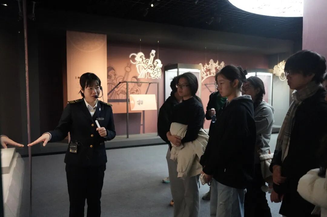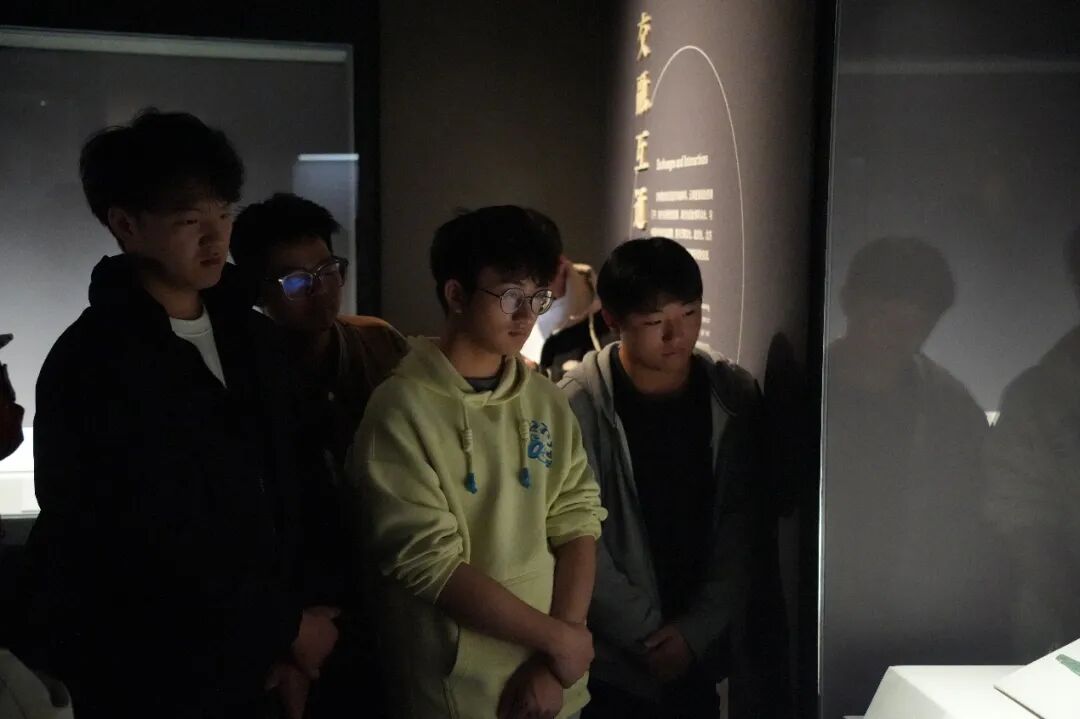 不同专业的学子在此找到与专业成长的联结:汽车智能技术专业学子既驻足古船模型前,对比航海技术与汽车智能制造共通的精工匠心,又在青铜器皿的精湛工艺中,体悟精益求精的职业精神;数字媒体技术专业学子则聚焦青铜纹饰的神秘线条与古朴造型,像观察青铜器的多层结构般,思考如何用数字技术赋予传统文化现代传播活力。