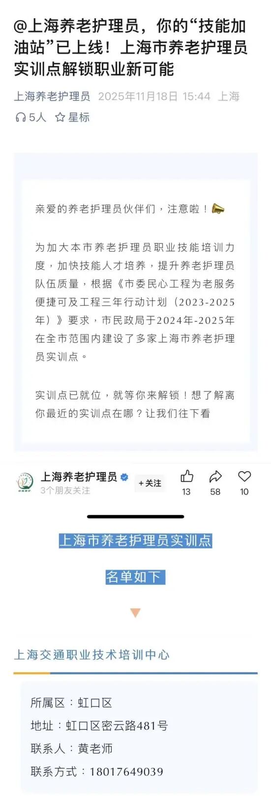养老护理员是养老服务体系的核心力量,优质的实训资源是培育专业人才的基础。此次获批的公共实训基地,将依托标准化实训场地、专业化教学设备和经验丰富的师资团队,聚焦养老护理员职业技能提升需求,开展涵盖生活照料、康复护理、心理慰藉、应急处理等多模块的实操培训。基地将严格遵循上海市养老护理员职业技能标准,通过 “理论+实操” 相结合的教学模式,帮助学员夯实专业基础、提升实操能力,为行业输送更多持证上岗、技能过硬的高素质养老护理人才。