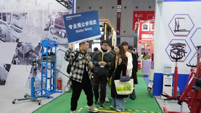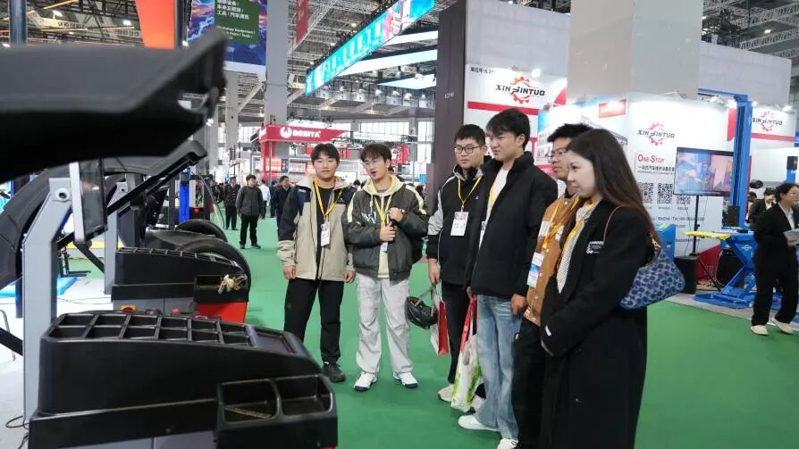 活动伊始,满载着学子们期待的大巴准时启程,于上午9时许抵达展会现场。在主办方专业引导员的带领下,研学队伍有序深入各大主题展馆,开启了一场紧贴行业脉搏的探索之旅。2.1号馆内,国际品牌展台的前沿技术与创新产品让人目不暇接,学子们驻足聆听讲解,细致观察产品结构,直观感受汽车后市场的技术迭代趋势;8.2号馆的"寻找竞速车王2.0"表演赛点燃了现场氛围,安全观赛区内学子们屏息观看专业车手的精彩竞技,随后在"奥地利Red Bull换胎体验"环节中,大家在专业人员的指导下亲身实践,感受汽车维修的精准与高效;6.2号馆的汽修专家现场操作演示更是干货满满,规范的流程、娴熟的技艺让学子们对专业技能的标准与要求有了更深刻的认知。