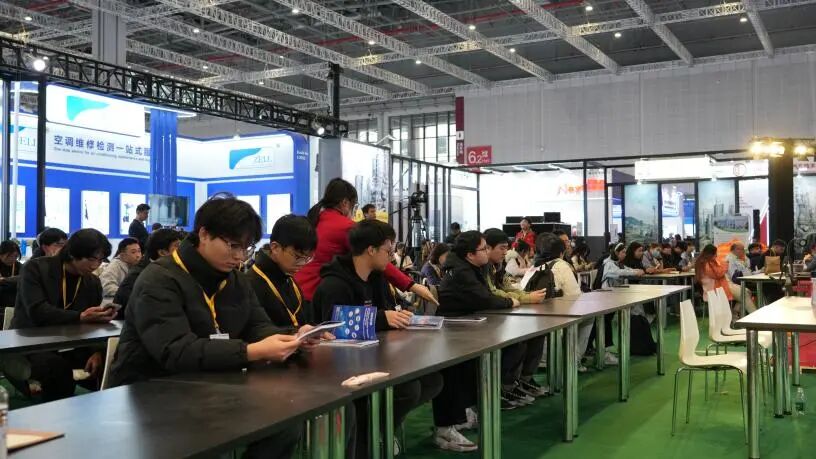 午后的重点专场活动为学子们搭建了与行业深度对话的桥梁。在5.1号馆"技术・创新・趋势"展区,行业专家主讲的《2026汽车产业人才发展趋势报告》,系统解析了当前汽车后市场的人才需求导向与职业发展路径,为学子们的专业学习与职业规划提供了清晰指引;"菁英启航-对话企业高管"活动中,学子们踊跃提问,就专业技能提升、行业就业前景等问题与企业负责人深入交流,现场互动氛围热烈。随后的4.1号馆参观中,汽车电子及电气系统企业的核心产品解决方案,让学子们对汽车智能化、电气化的发展趋势有了更直观的理解。
