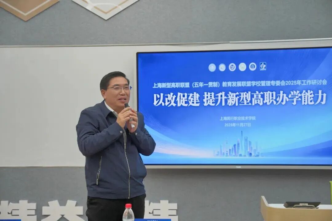 闵职院党委书记陈冬发和党委副书记、院长刘路喜都表示,本次研讨会既是联盟凝聚合力的重要平台,更是破解新型高职发展难题、提升办学质量的关键契机。当前上海高职教育正面临综合改革深化与分类评价转型的双重机遇,联盟院校需以“以改促建”为抓手,协同推进专业升级、人才培养创新与服务能力提升,为上海产业升级输送更多高素质技能人才。