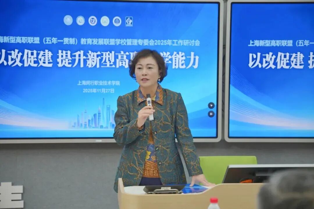 11月26日下午,联盟教学管理专委会会议在上海南湖职业技术学院举行,会议以“衔接 质量 创新:构建五年一贯制高质量教学管理体系”为主题。联盟轮值主任、南湖职院党委副书记、院长朱建柳充分肯定本次研讨的实效性,并提出:一是要加快数学、语文等公共课程教学指南的推广应用,将其作为贯通培养的标准依据之一;二是要建立联盟内教学质量监测与评价机制,以数据治理赋能管理优化;三是要以教学管理为人才培养“生命线”,形成可推广的“上海新型高职教学管理范式”。