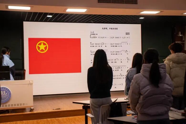 仪式在庄严的国歌声中开始。全场肃立高唱,歌声激昂,既是对历史的致敬,也抒发了南湖学子奋发有为、报效祖国的青春壮志。