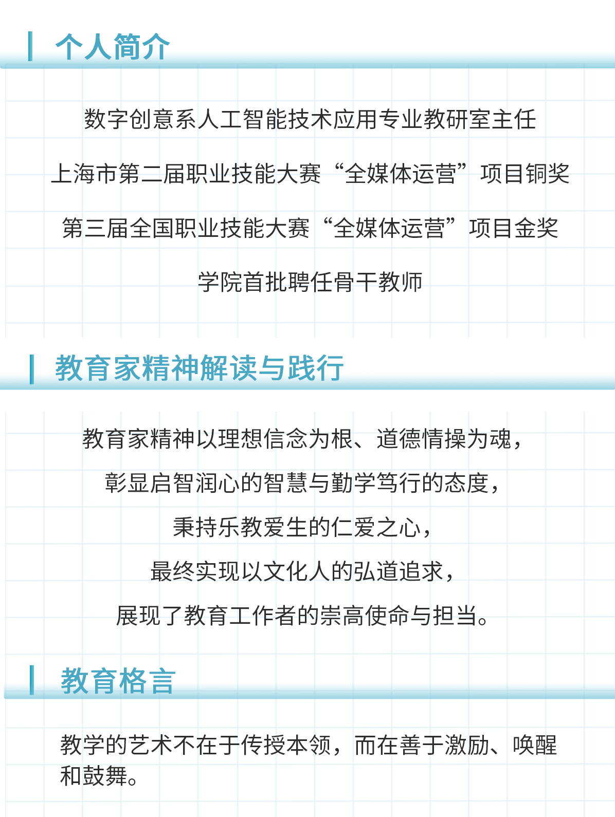 在实训设计上,她创新构建“阶梯式”培养体系:基础阶段聚焦海报绘制、MG动画制作等单一技能;进阶阶段复刻比赛全流程,要求学生独立完成“策划—制作—开发”的闭环操作;实战阶段则深度对接企业真实项目,并以国赛标准进行数据分析与效果评估,最终形成“学习—实践—反馈—提升”的良性育人循环。