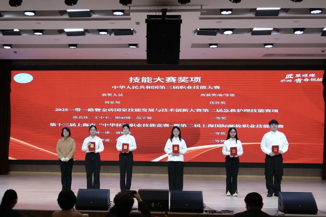 颁奖环节紧扣“匠技筑梦”、“风采致远”、“星光引路”、“学海领航”四大篇章展开,全面表彰在技能竞赛、社会实践、综合素养、学业成绩等方面表现突出的优秀学子。