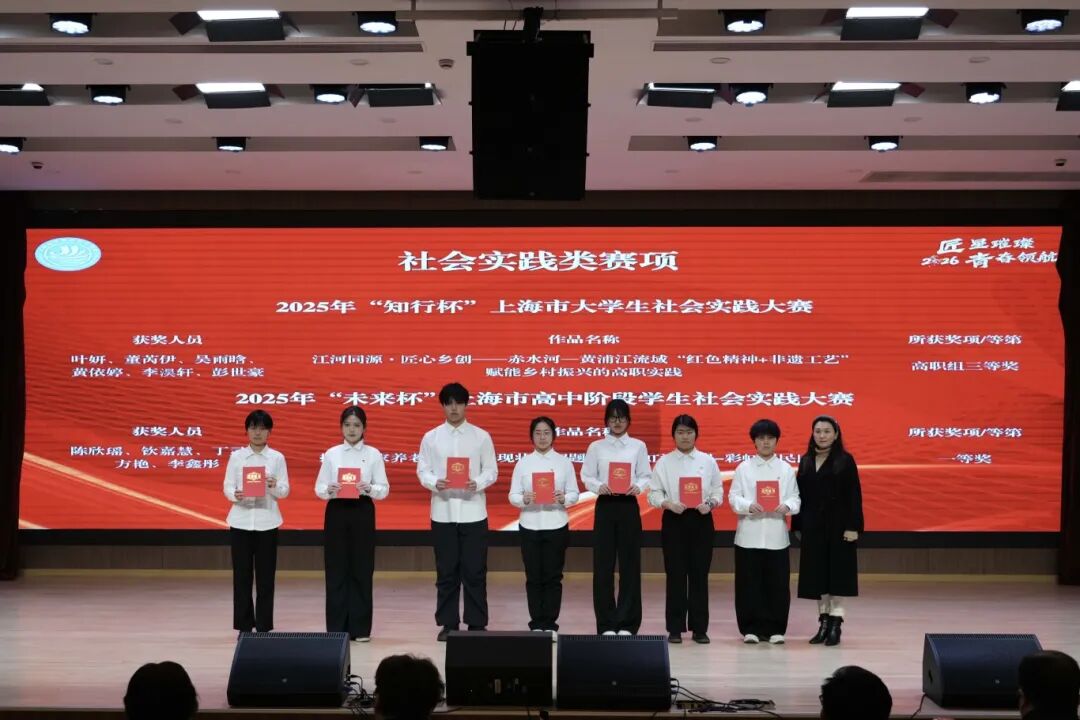 护理2352班陈欣瑶同学作为“未来杯”上海市高中阶段学生社会实践大赛一等奖获得者发言,讲述了团队深入社区调研居家养老服务的实践经历,传递了青年学子关注社会、践行责任的青春担当,呼吁更多学子打破专业边界,走出校园对接社会需求,愿联动更多同学与社区建立长期合作,以所学所长服务社会、书写青春答卷。