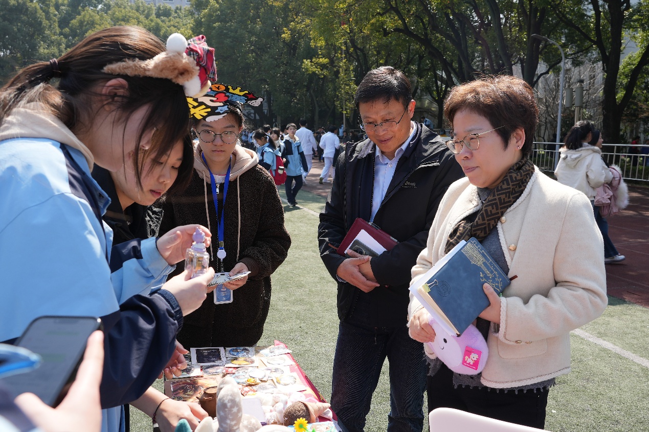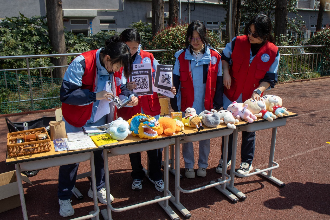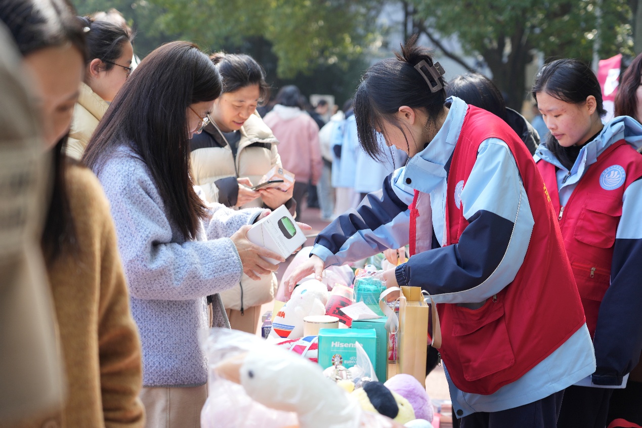 活动现场秩序井然,各类摊位规范布置。学院团委、学生会精心筹备了手工饰品、文创摆件等义卖物品,志愿者们积极向师生介绍展品、解答疑问,同步宣传雷锋精神与公益理念,引导大家踊跃参与爱心传递。教师工会也专门设立摊位,教师们现场与学生亲切互动,带动广大师生共同投身公益实践。各班摊位特色鲜明,同学们积极准备各类义卖物资,以实际行动传递爱心。
