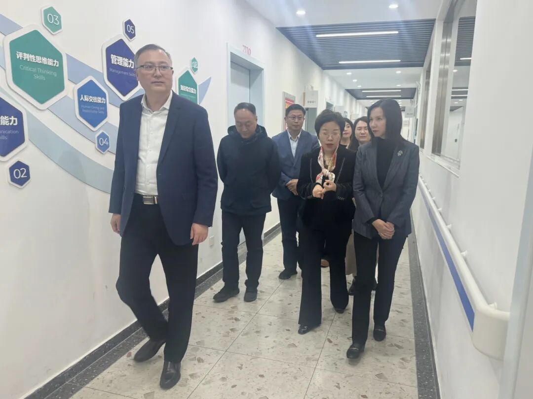 蒋婵一行实地参观了学院实训中心、教育教学基地,详细了解学院专业设置、人才培养、校企合作以及服务区域产业发展等方面的情况,对学院近年来立足区域发展需求、持续深化职业教育改革所取得的成效给予充分肯定。她表示,南湖职院专业设置鲜明,办学定位清晰,许多专业与产业发展需求联系紧密、契合度高,体现了职业教育服务区域经济社会发展的鲜明导向。希望学院进一步发挥办学优势,主动加强与虹口区企业的沟通对接,在校企合作、产教融合项目建设、人才协同培养等方面形成更多务实成果,更好促进学生高质量就业。