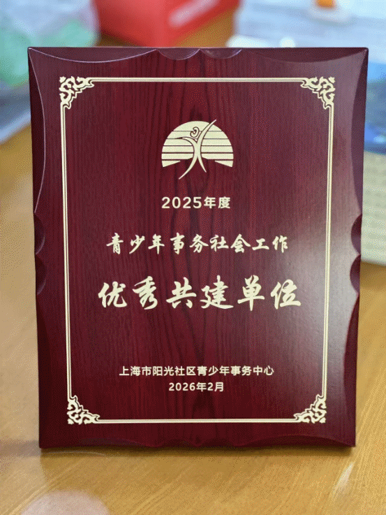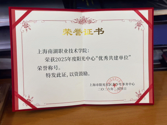 近日,上海南湖职业技术学院被上海市阳光社区青少年事务中心授予2025年度青少年事务社会工作“优秀共建单位”称号,并获颁荣誉证书与铜牌。